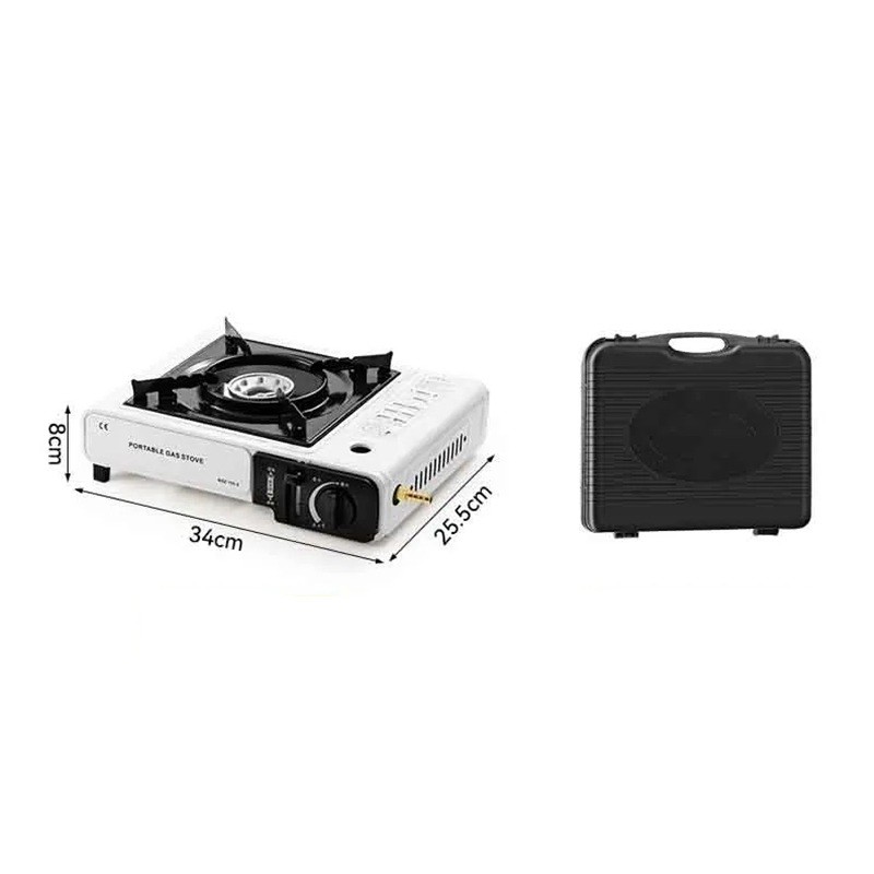 Il fornello ha dimensioni 34 x 25,5 x 8 cm, il che garantisce una base stabile per cucinare e al contempo una facile maneggevolezza. La costruzione in acciaio inossidabile di alta qualità offre un'elevata resistenza alla corrosione e ai danni meccanici. Grazie alla pratica scatola di trasporto, il trasporto è sicuro e comodo. Il design compatto consente un facile stoccaggio in auto, camper o zaino. Questo forno a gas portatile è ideale per la preparazione rapida di pasti e il riscaldamento dell'acqua in campo.
