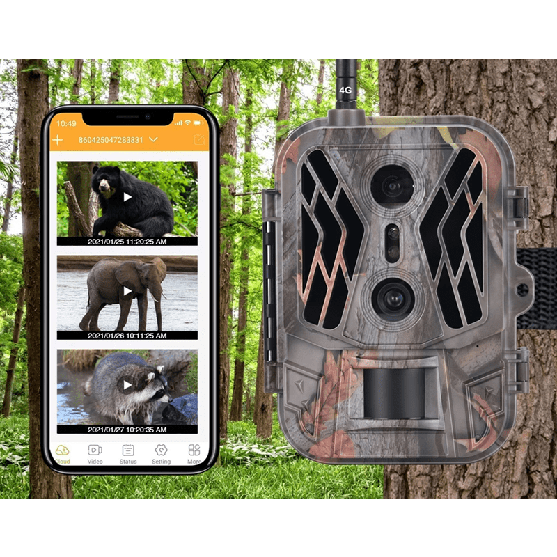 Questa moderna fototrappola è l'assistente ideale per monitorare la fauna selvatica e per scopi di sicurezza. Offre risoluzione 36MP e video 4K, che cattura ogni dettaglio anche in movimento rapido. Grazie alla visione notturna con obiettivo doppio, garantisce immagini nitide sia di giorno che di notte. Il supporto per trasmissione live 4G in tempo reale consente di visualizzare l'immagine da qualsiasi luogo direttamente sul tuo telefono. Con una batteria ad alta capacità da 8000 mAh e una costruzione impermeabile IP65, è pronta per condizioni esterne impegnative.