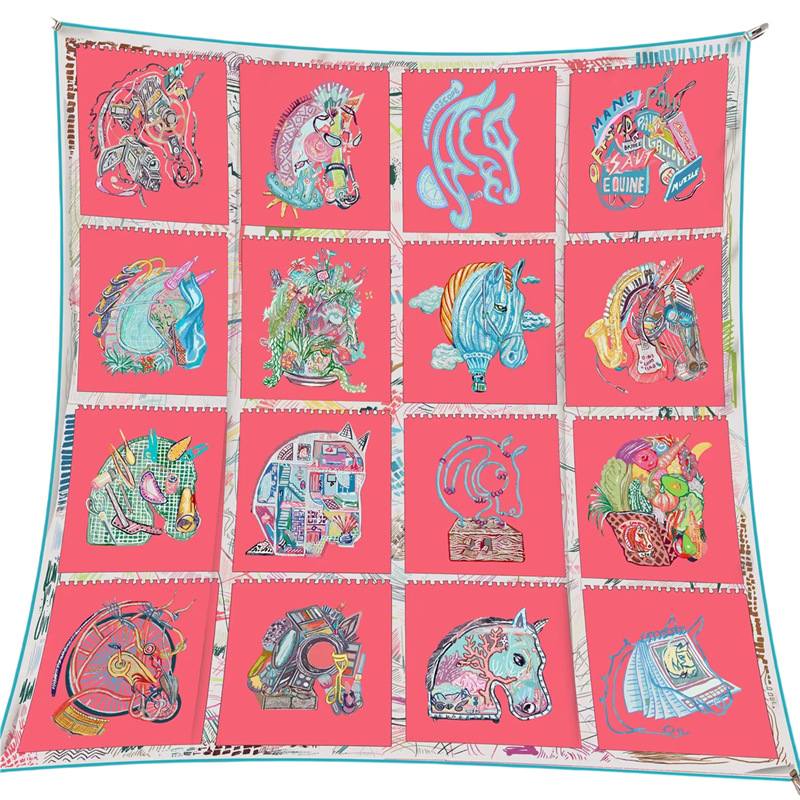 Questo foulard quadrato si presenta come una tela da pittore trasferita nel mondo della moda. Il motivo moderno di cavallo dominante conferisce all'intero design energia, movimento ed eleganza senza tempo. Grazie al suo design universale, puoi indossarlo come foulard per testa, collo e corpo, creando ogni volta uno stile diverso. Completa perfettamente un outfit minimalista così come combinazioni di moda più audaci. È la scelta ideale per le donne che cercano un accessorio originale e stiloso.
