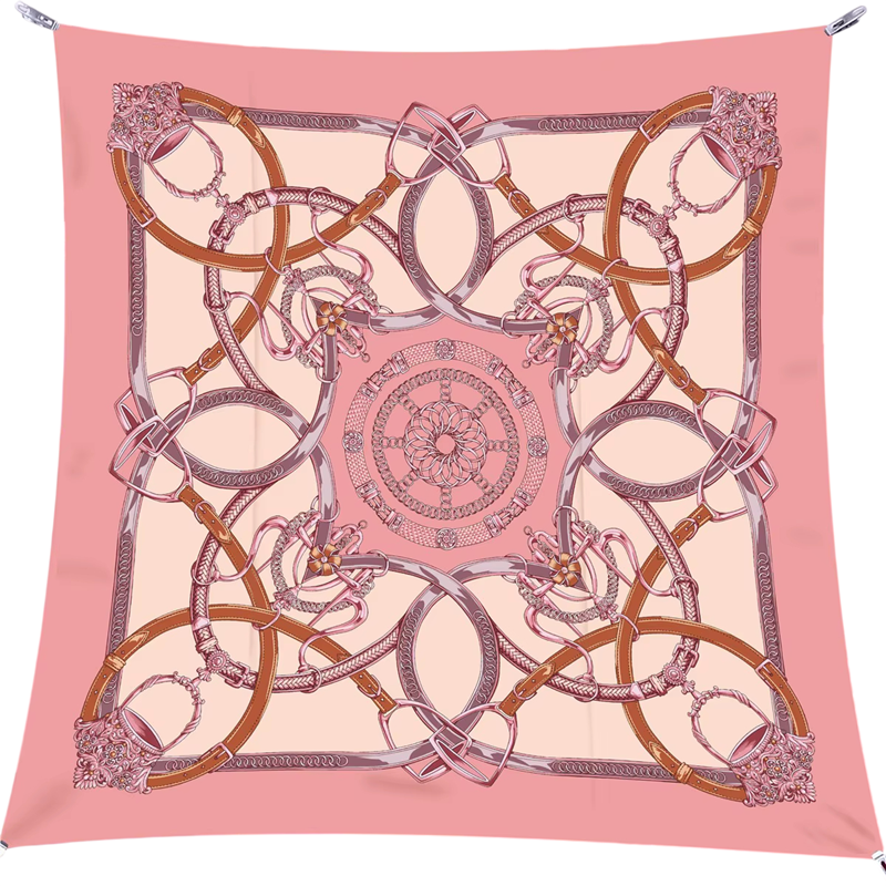 Foulard quadrato elegante in design equestre è un accessorio moda multifunzionale per testa, collo e corpo. Descrizione completa