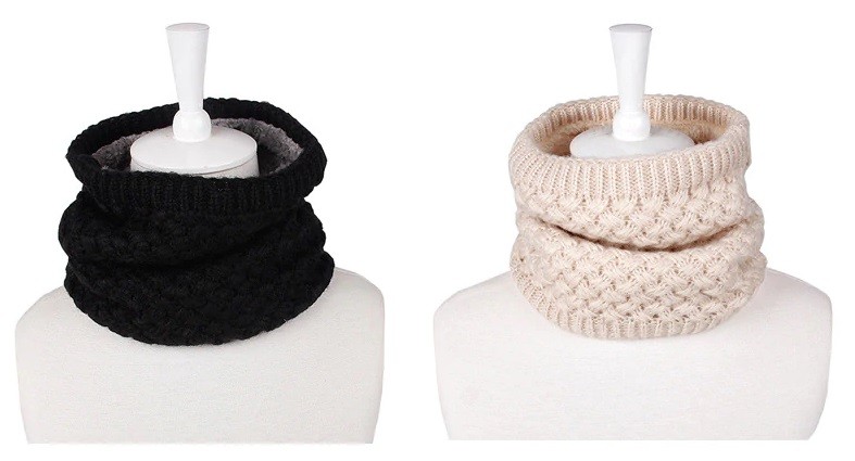 Il foulard è lavorato a maglia da un lato e morbido dall'altro.