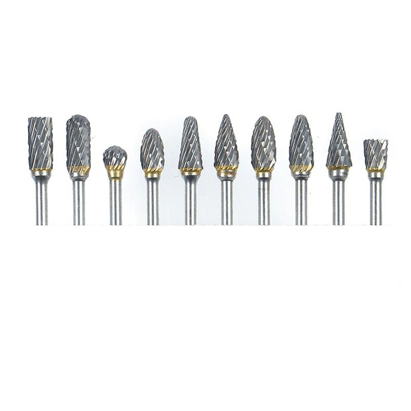 Set di frese in acciaio carburo. Diverse punte con forme speciali. Adatte per materiali più morbidi. Descrizione completa