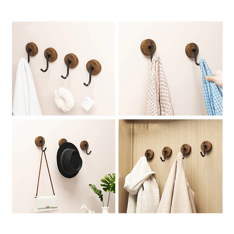 Gancio adesivo da parete 6 cm Gancio sospeso in legno di noce e metallo Senza foratura Appendino in legno per asciugamani Chiavi Cucina Bagno