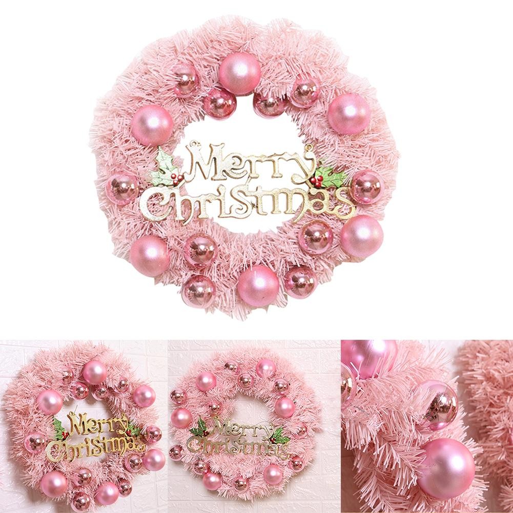 Ghirlanda di Natale originale in pino artificiale di colore rosa non convenzionale.