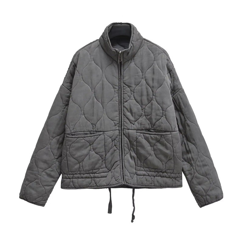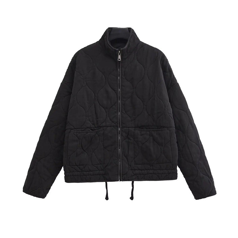 Giacca autunnale trapuntata da donna con colletto Chiusura con zip Tasche esterne Coulisse Giacca calda per l'uso quotidiano
