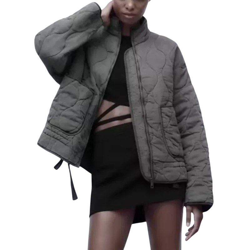 Questa giacca da donna è la soluzione ideale per le fredde giornate autunnali, quando apprezzi il comfort, la funzionalità e lo stile. Grazie al design trapuntato, isola perfettamente il calore e allo stesso tempo appare elegante. Il colletto protegge il collo dal vento e dal freddo, mentre la chiusura con zip facilita l'abbigliamento rapido. Ai lati ci sono due tasche spaziose per piccoli oggetti o per le mani, e nella parte inferiore c'è una coulisse che ti consente di adattare la giacca alle tue esigenze. Il taglio più ampio si adatta a outfit quotidiani e a stratificazioni di abbigliamento.