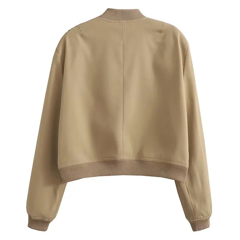 Pagina iniziale Pagina iniziale Abbigliamento e accessori Abbigliamento donna Giubbotti e cappotti da donna Giacche primaverili e autunnali da donna Giacca bomber da donna con tasche Giacca corta elegante con scollatura a V Chiusura con bottoni Giacca primaverile alla moda con maniche lunghe