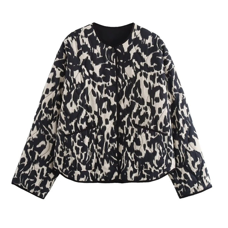 Giacca trapuntata elegante con motivo animale per donne che vogliono distinguersi. Scelta ideale per la stagione di transizione o per la città. Descrizione completa