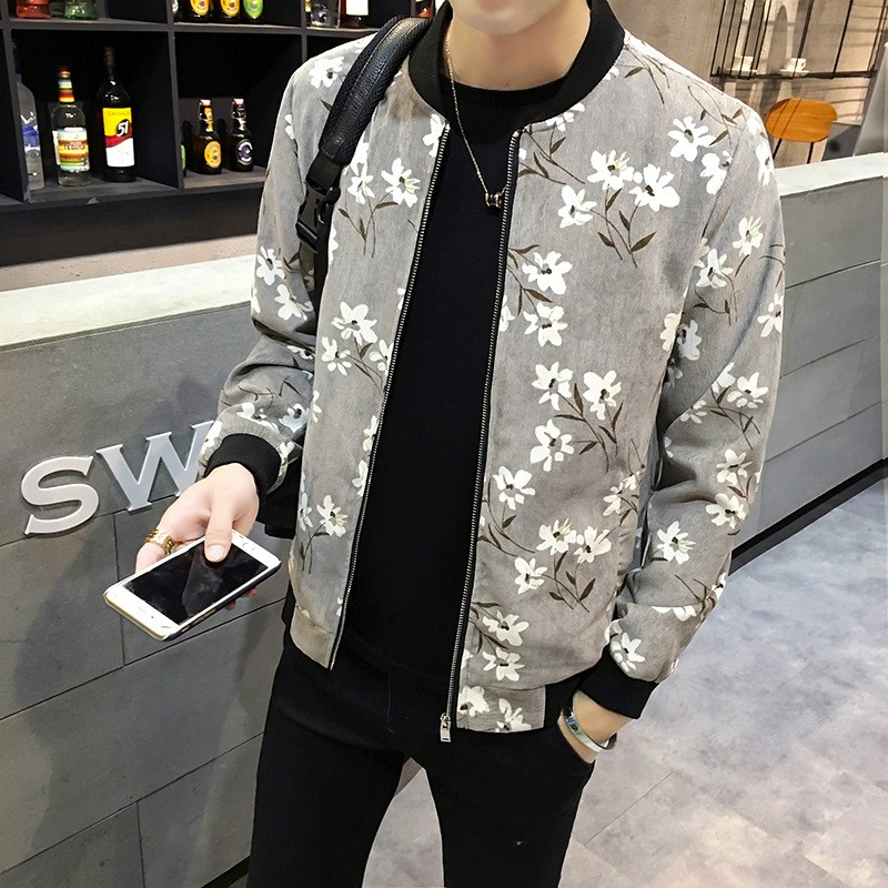 Giacca da uomo primaverile con fiori - Grigia