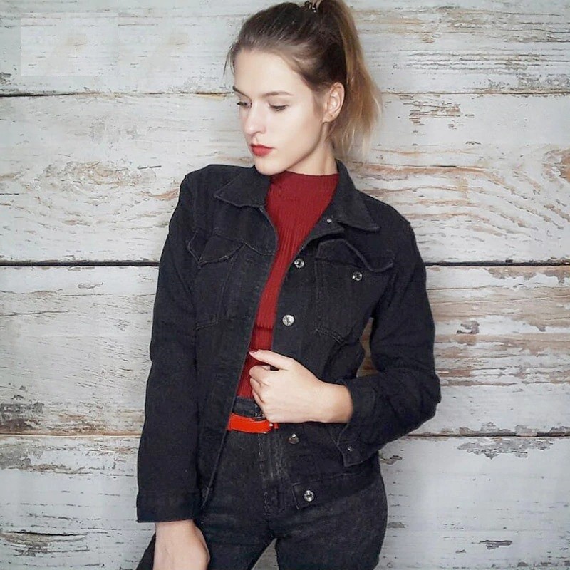 Giacca di jeans nera da donna