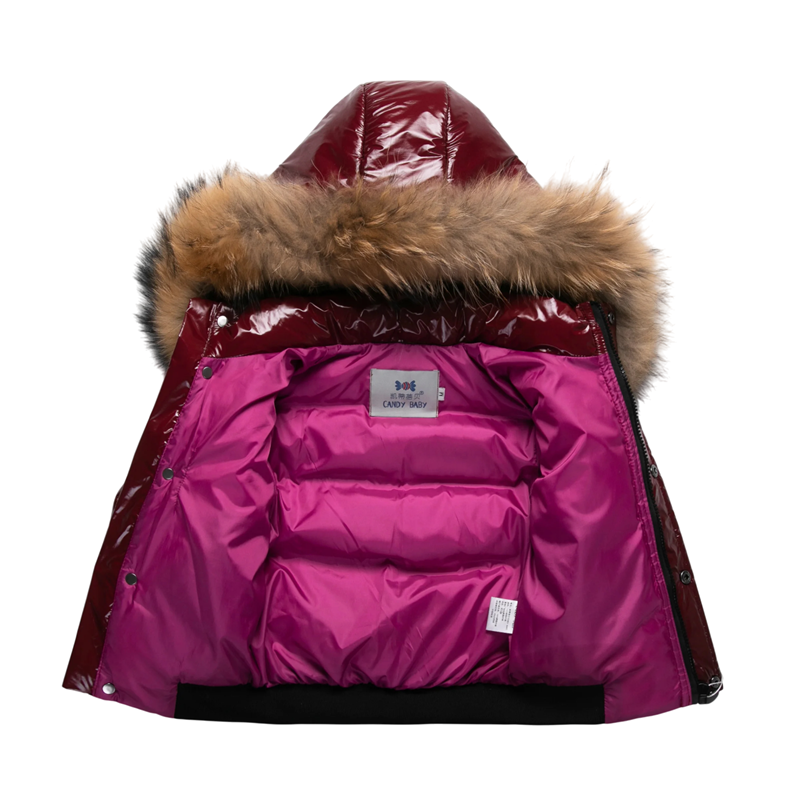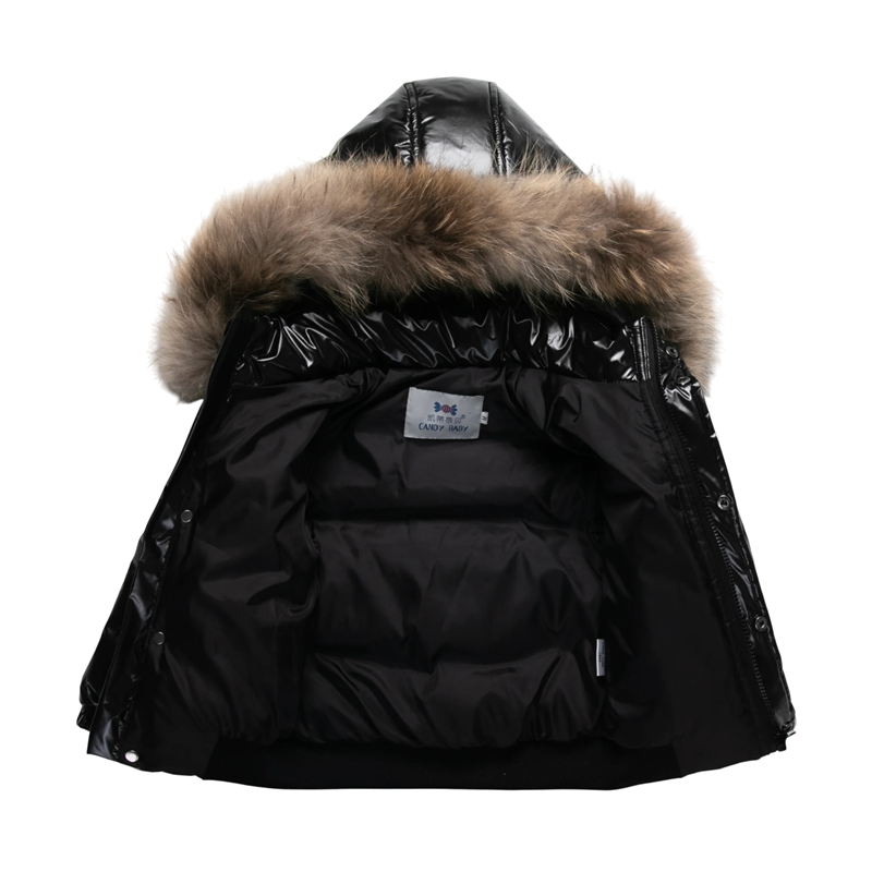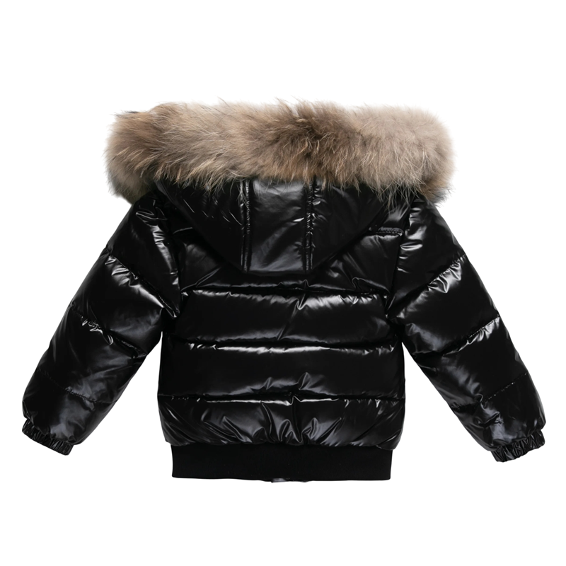 Giacca in piuma invernale per bambini 90% piuma d'anatra bianca Giacca unisex lucida con cappuccio e pelliccia Zip bottoni e tasche