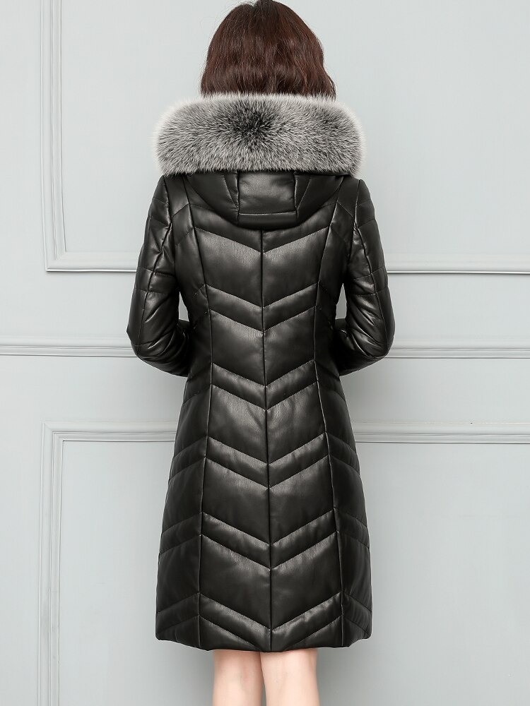 Giacca in pelle per l'inverno. Con pelliccia sintetica.