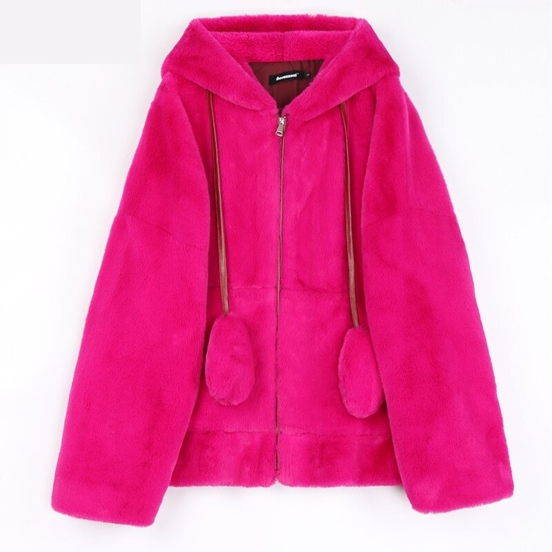 Giacca pelosa da donna con orecchie