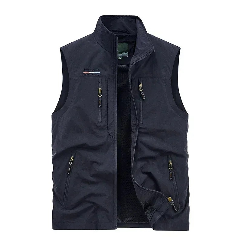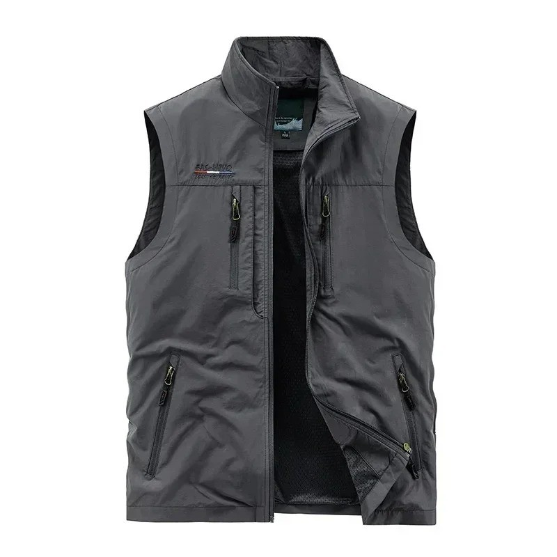 Gilet da uomo con tasche con zip e chiusura con zip in poliestere per escursionismo, lavoro all'aperto e uso quotidiano