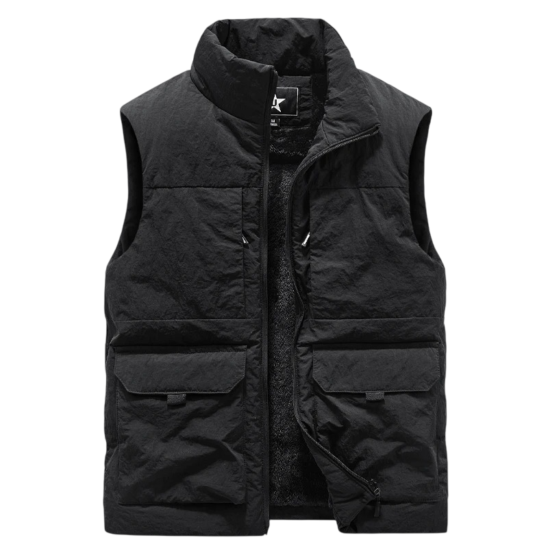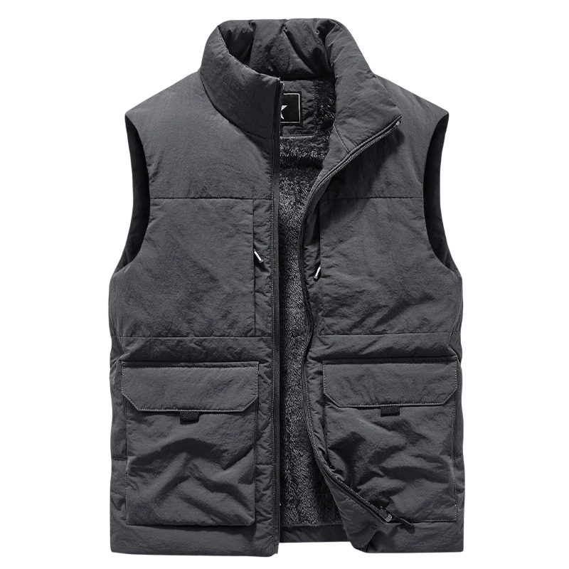 Gilet da uomo imbottito con tasche e colletto con zip in poliestere per escursioni, pesca e uso quotidiano in climi più freschi
