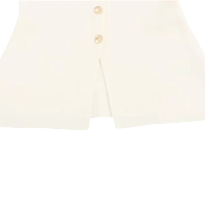 Gilet elegante beige da donna con scollatura a O e chiusura con bottoni. Il materiale in poliestere leggero garantisce comfort e un aspetto senza tempo. Descrizione completa
