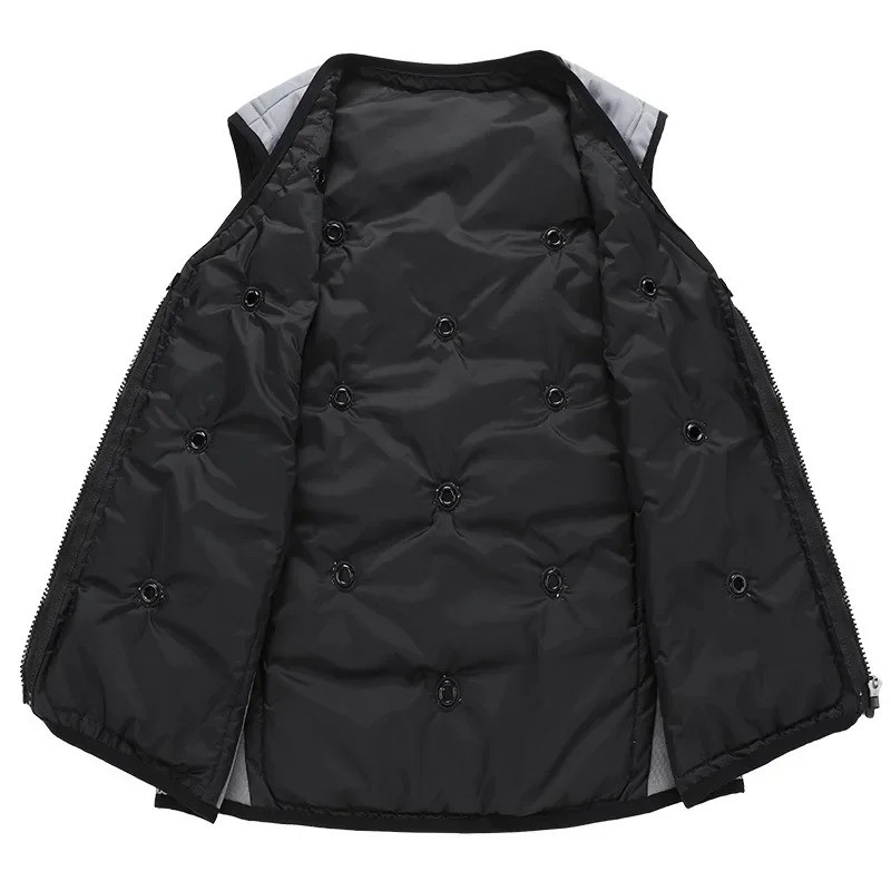 Sulla parte anteriore del gilet sono presenti dei fori rotondi visibili, parte della costruzione del gilet. Questi elementi possono essere correlati al suo design funzionale e completano il suo aspetto tecnico.