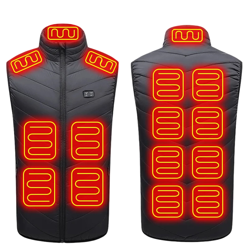 Questo gilet riscaldato da uomo in elegante colore nero offre il massimo comfort e calore uniforme grazie a 15 zone riscaldate distribuite su tutta la parte anteriore e posteriore del corpo. Include elementi riscaldanti su spalle, collo, pancia e tutta la lunghezza della schiena, fornendo una copertura completa in condizioni di freddo. Grazie a fibre riscaldanti in carbonio si garantisce un riscaldamento rapido, efficace e sicuro con lunga durata. Il gilet offre 3 livelli di temperatura ed è alimentato tramite USB 5V/2A, il che consente di alimentarlo con una powerbank comune. La costruzione in materiale impermeabile è ideale per sport invernali, lavoro all'aperto e uso quotidiano.