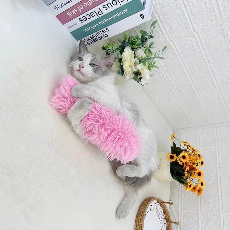 1x Giocattolo da masticare in peluche per gatti a forma di cuscino ovale con pelo lungo