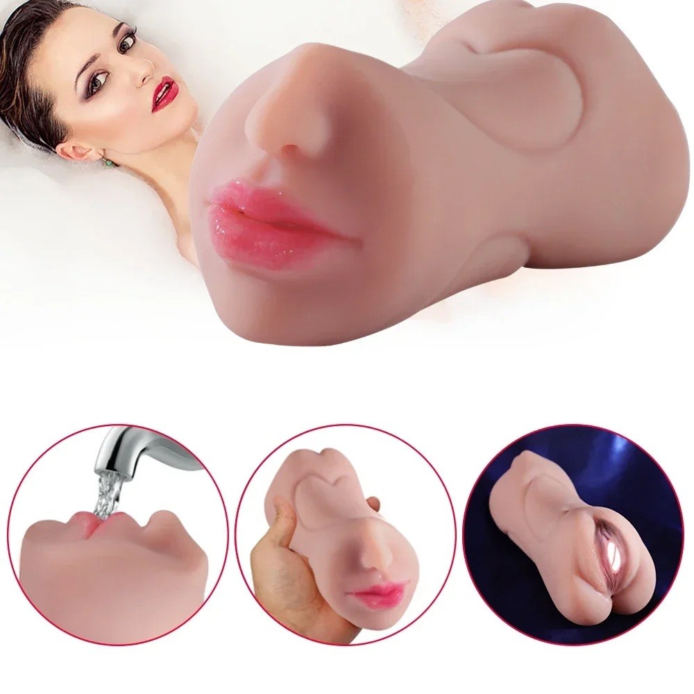 Giocattolo masturbatore 3 in 1 in silicone a forma di bocca, vagina e apertura anale, confezione discreta, aspetto realistico, silicone flessibile
