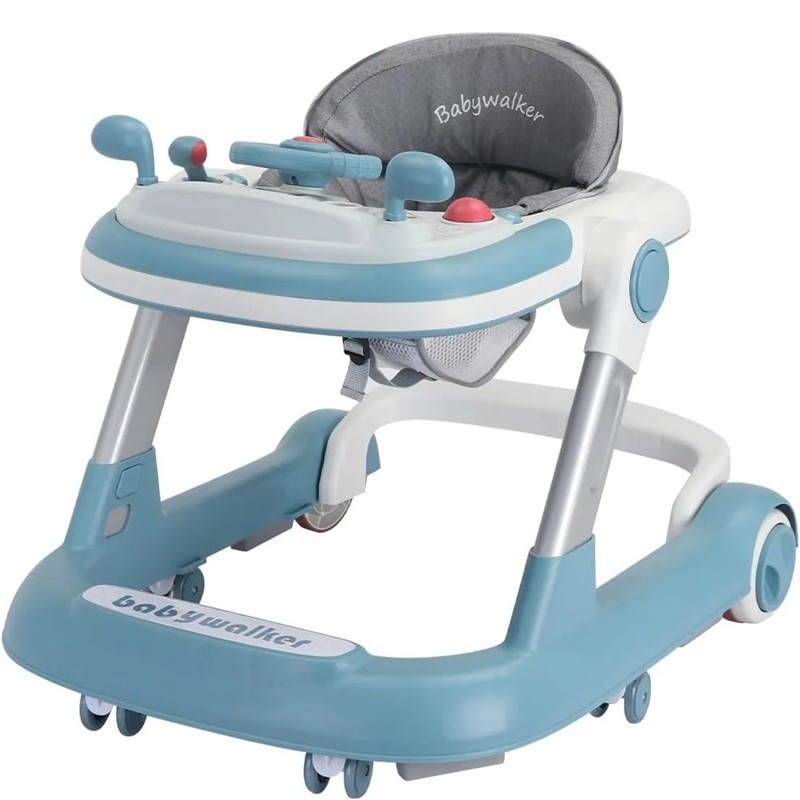 Girello 2 in 1 con vassoio removibile plastica cotone lino pieghevole girello per bambini con elemento musicale