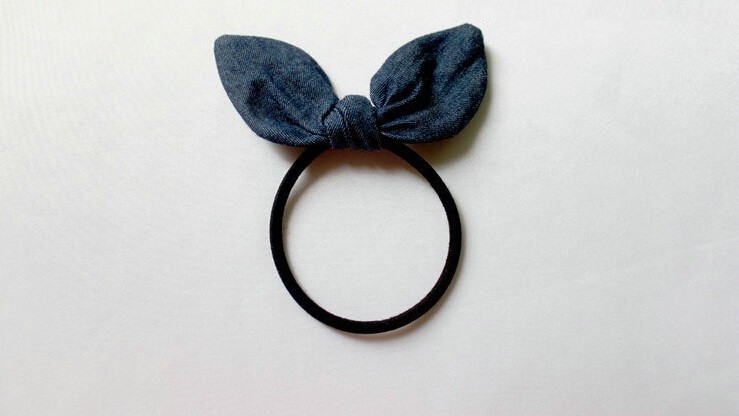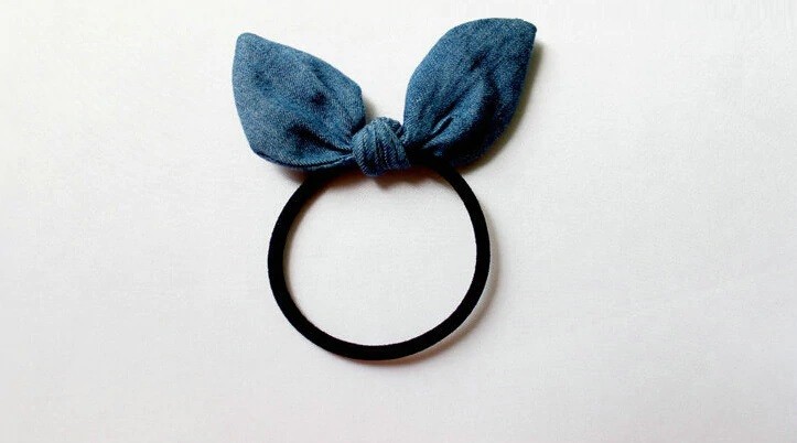 Grazie al fiocco in denim, la gomma si distingue magnificamente nella coda di cavallo.