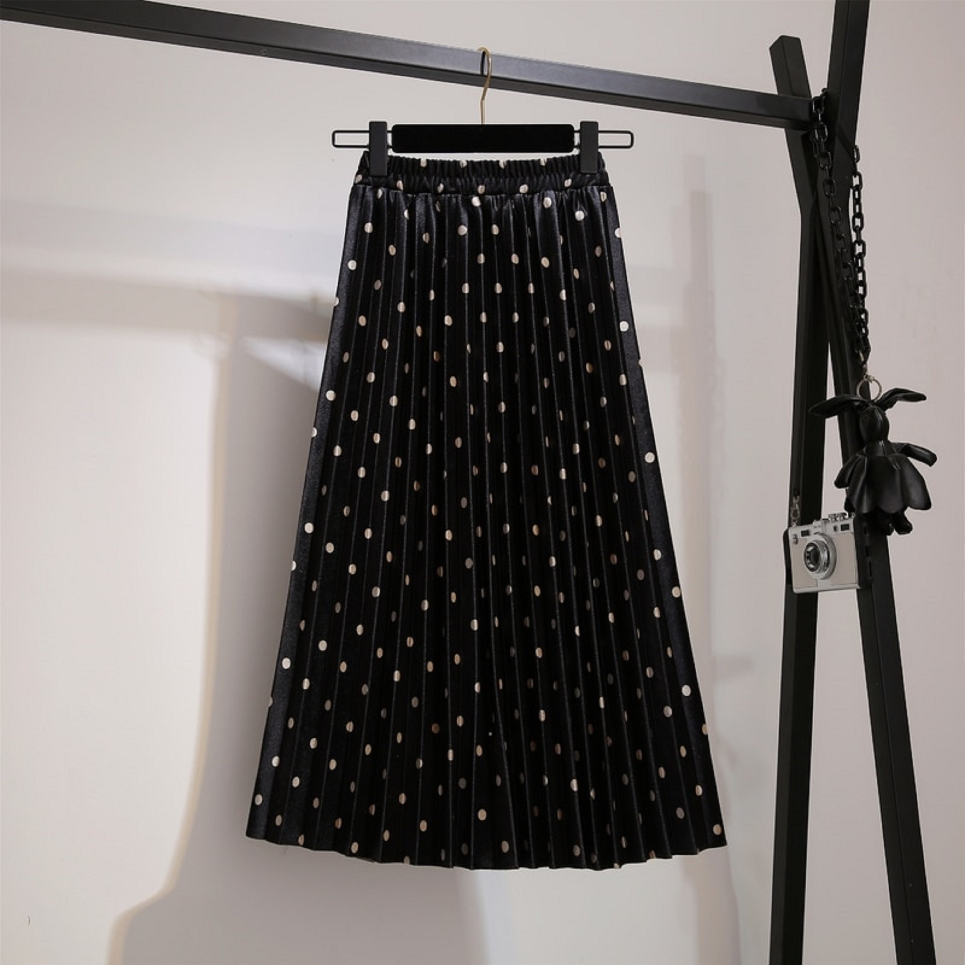 Gonna a pieghe da donna con pois