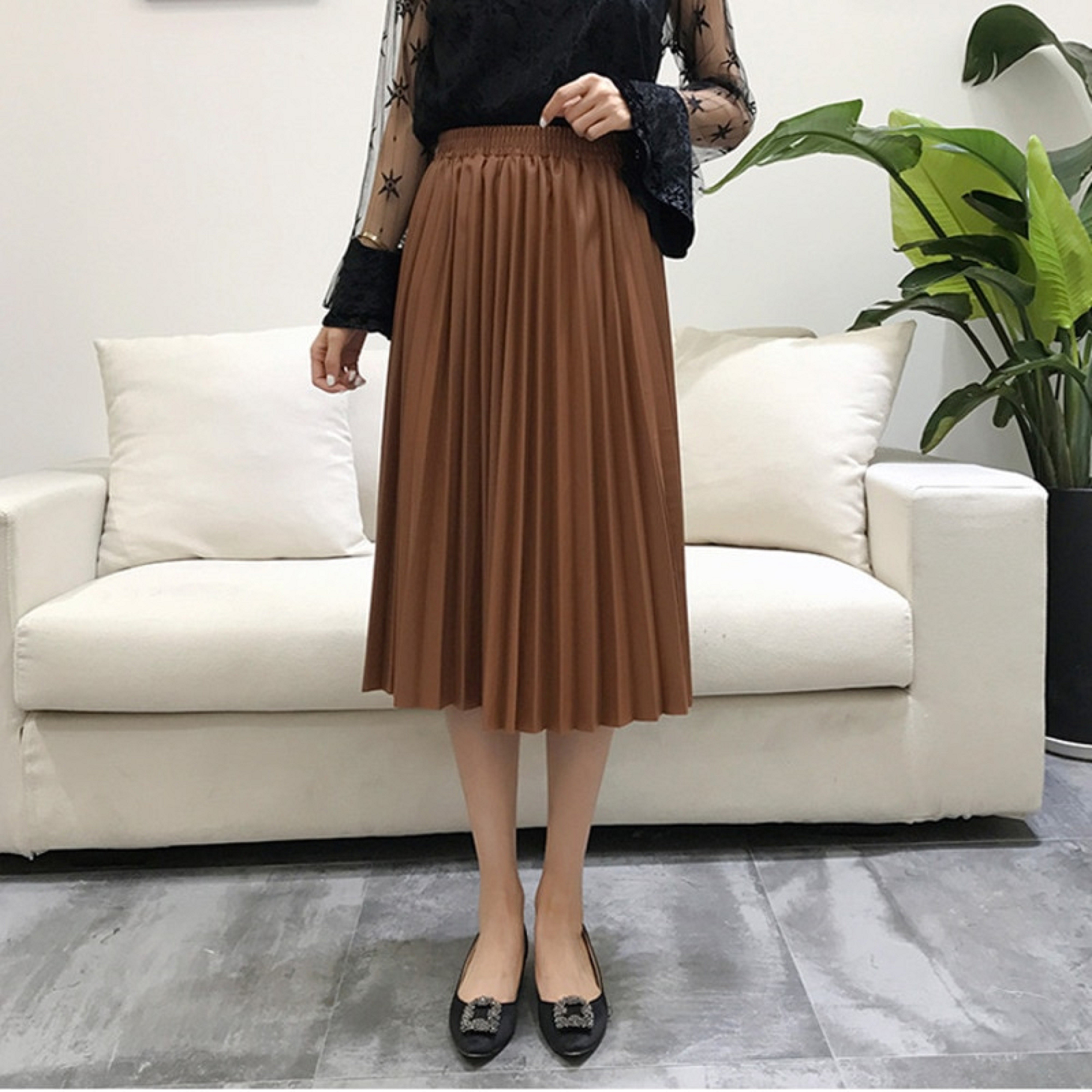 Gonna a pieghe da donna in ecopelle