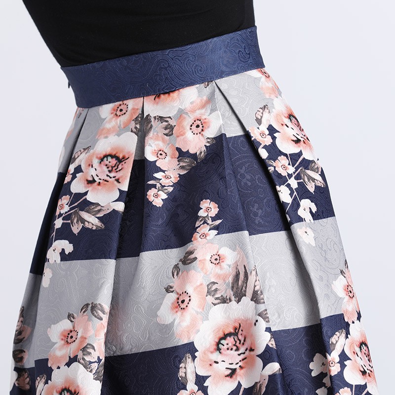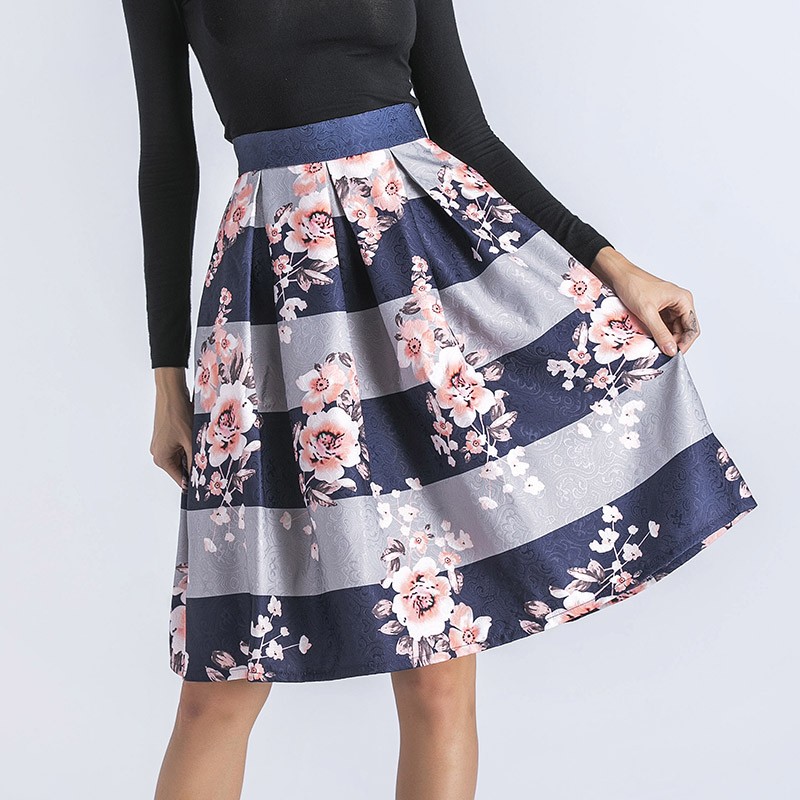 Buďte roztomilá s touto sukní s proužkami a květinami.