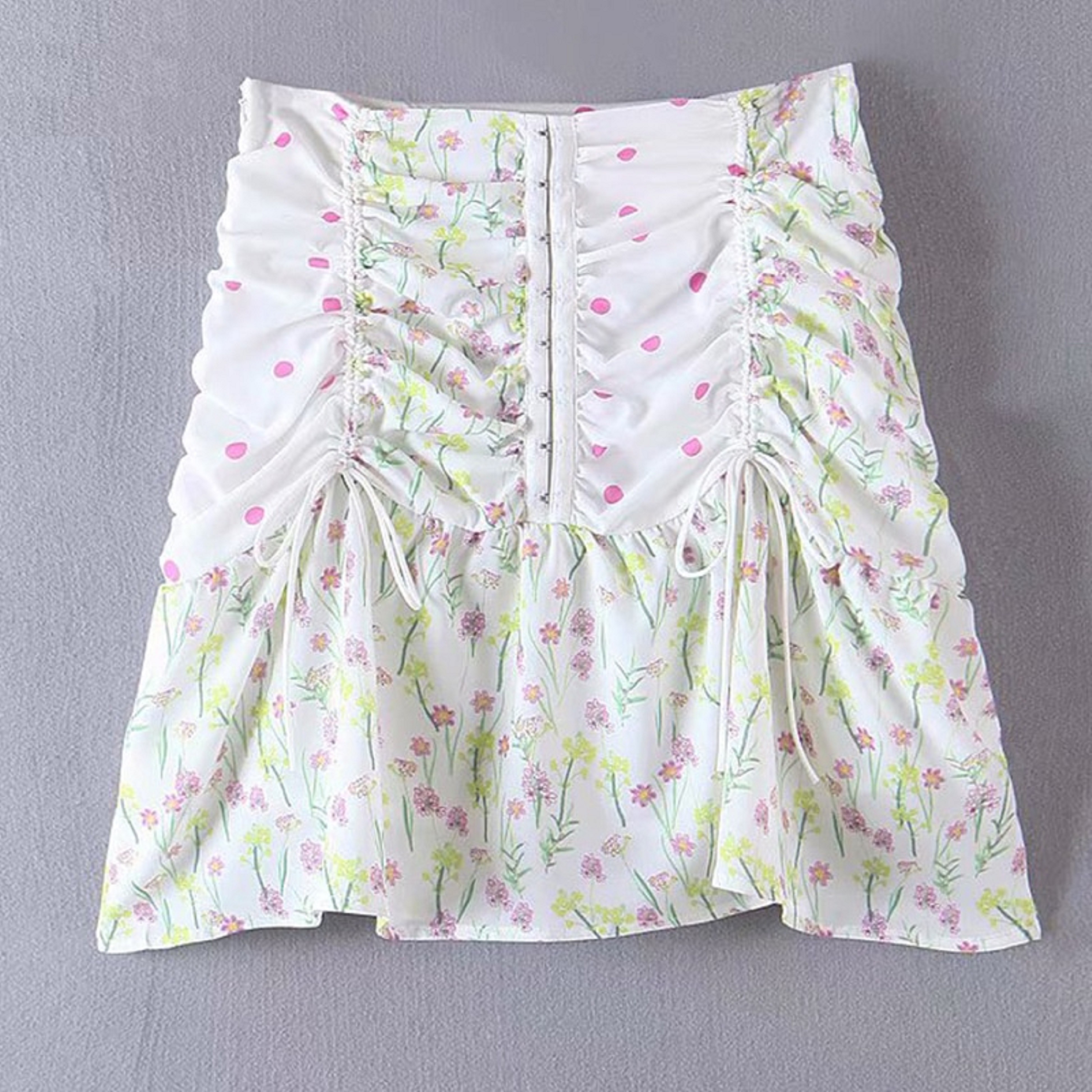 Gonna mini da donna con fiori e pois