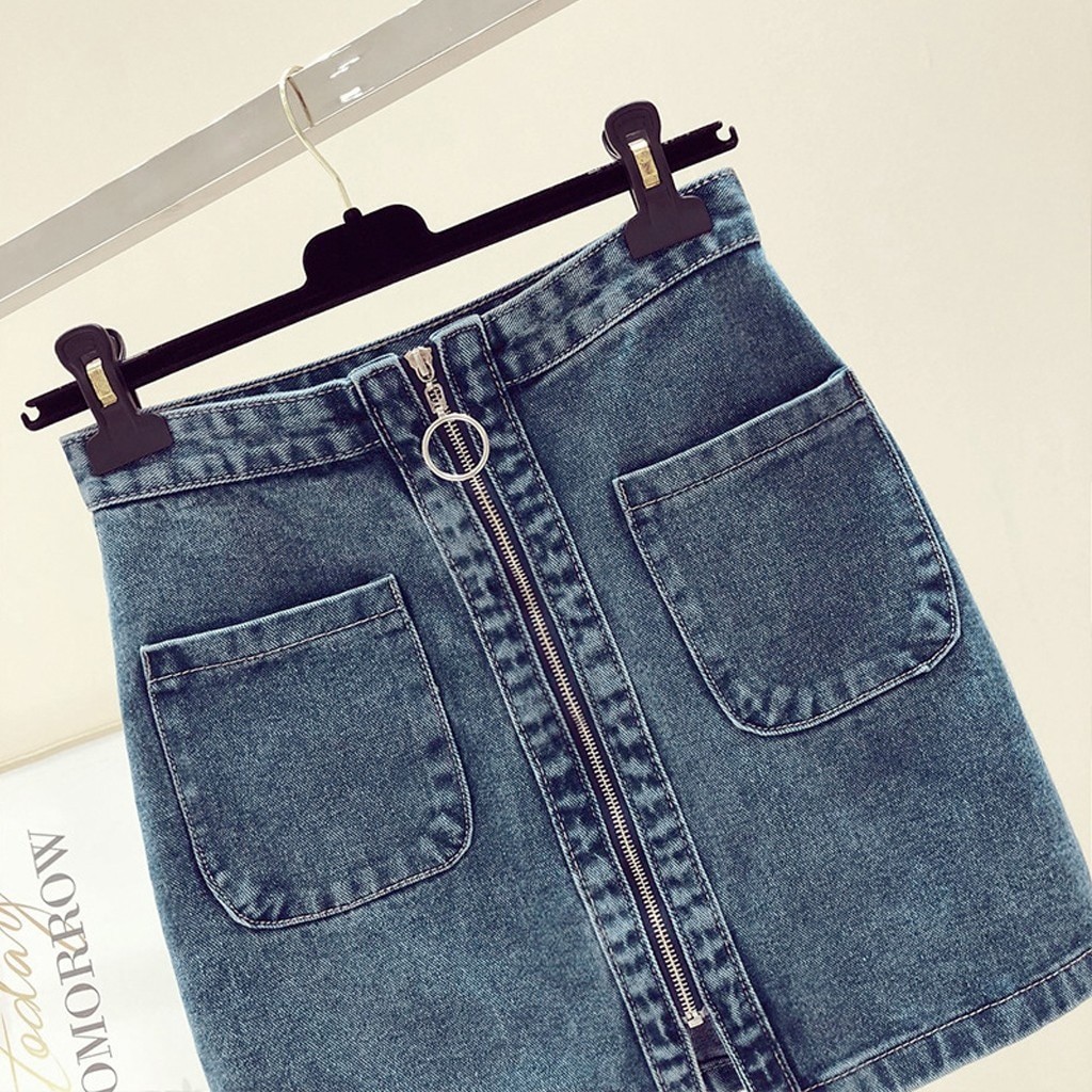 Gonna mini in denim con zip da donna