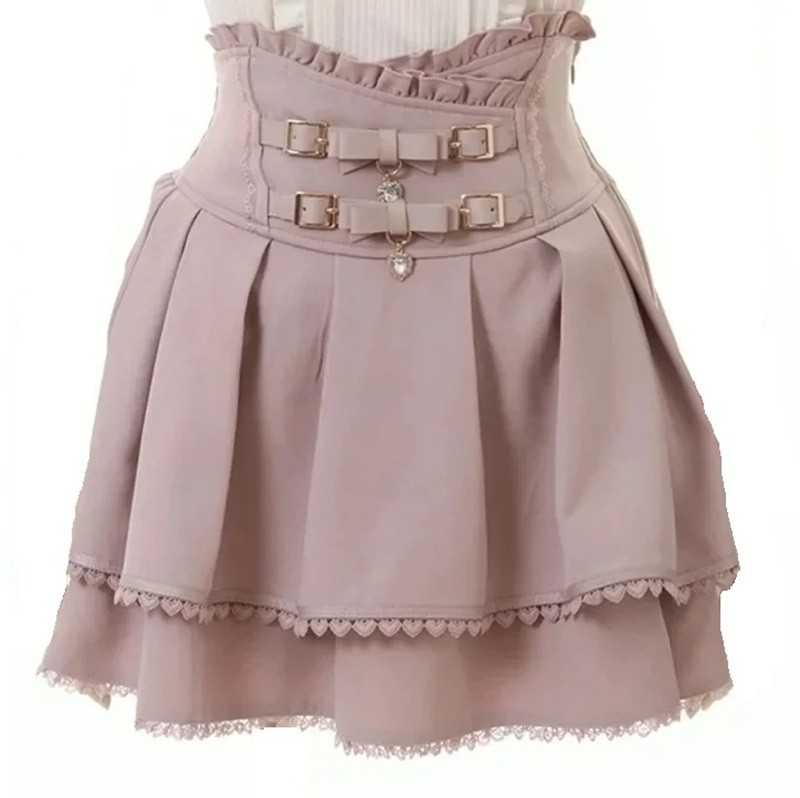 Gonna mini stilosa con plissettature, dettagli in pizzo e allacciatura ispirata allo stile giapponese di Harajuku. Ideale per un outfit originale. Descrizione completa