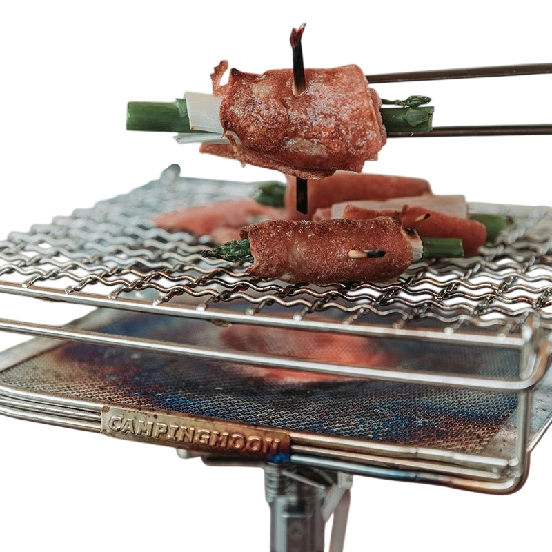 Griglia a gas portatile 16,5 x 16 x 4 cm Acciaio inossidabile con manico Mini griglia da campeggio Griglia da tavolo per viaggi picnic Argento