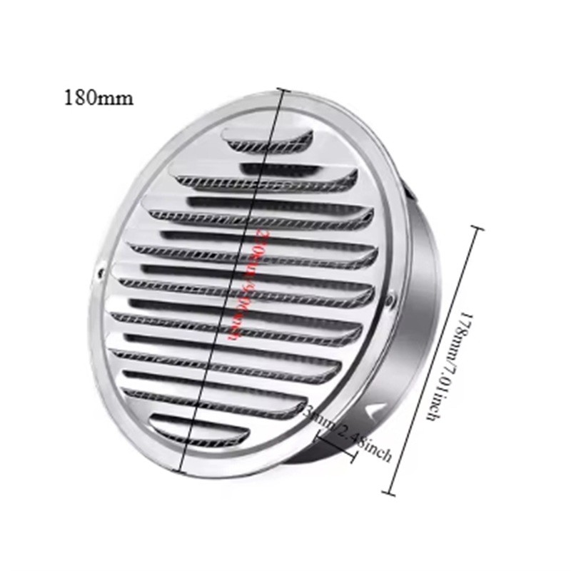 Griglia di ventilazione rotonda 180 mm 178x230x63 mm Acciaio inossidabile 201 Protezione contro gli insetti Uso esterno e interno Scarico e circolazione dell'aria