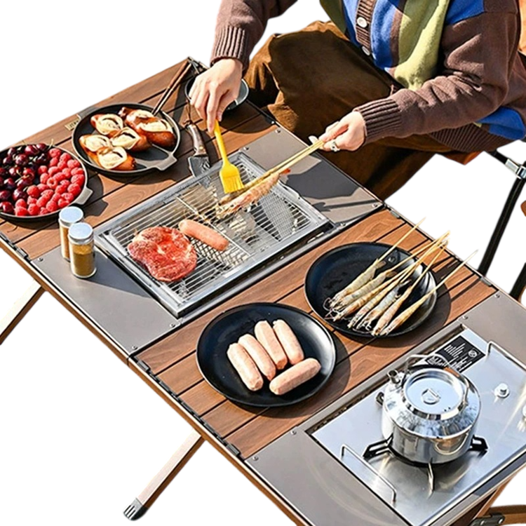 Pratica griglia portatile a carbone in acciaio inossidabile, adatta per giardino, campeggio o picnic. Costruzione compatta per un facile trasporto. Descrizione completa