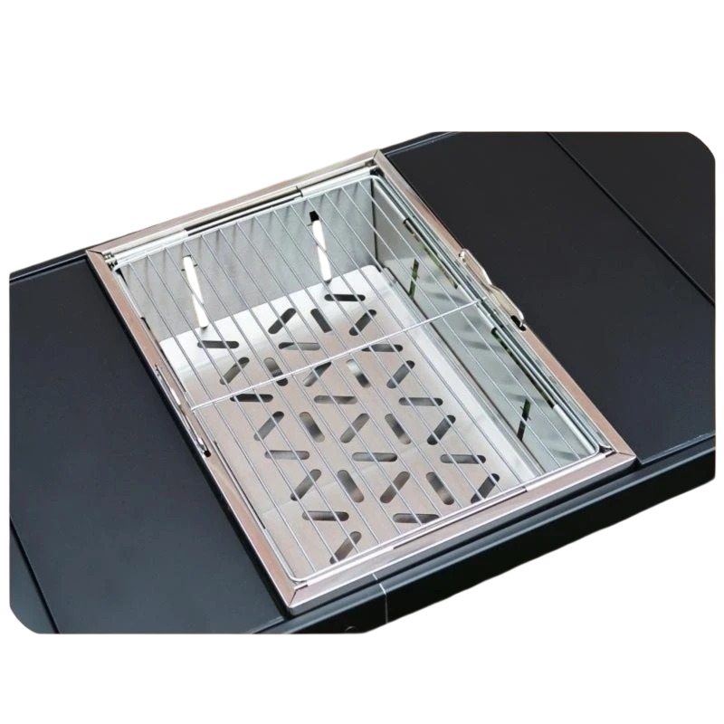La griglia è progettata per l'uso con carbone vegetale, che conferisce ai piatti preparati il tipico sapore affumicato e aroma. La costruzione della griglia permette una distribuzione uniforme del calore, ideale per la preparazione di carne, verdure o altre specialità grigliate. Grazie al design pratico, la griglia è adatta sia per principianti che per esperti amanti del barbecue.