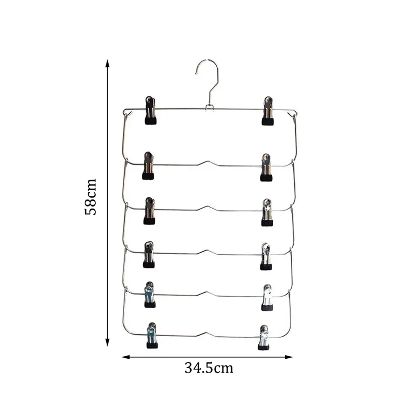 Pratica gruccia metallica multilivello per pantaloni con 6 strati e ganci consente un'asciugatura efficace e risparmia spazio nell'armadio e nello stendibiancheria. Descrizione completa