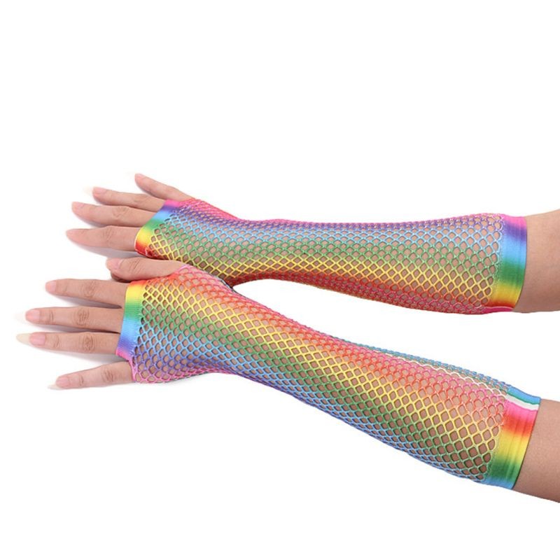 Guanti a rete lunghi arcobaleno