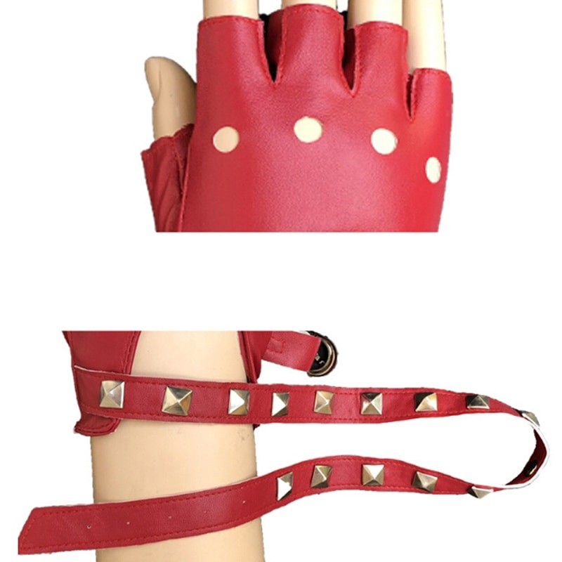 Guanti da donna senza dita in pelle sintetica decorati con borchie.