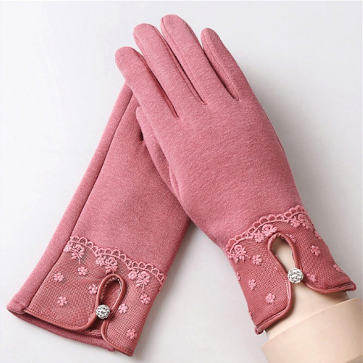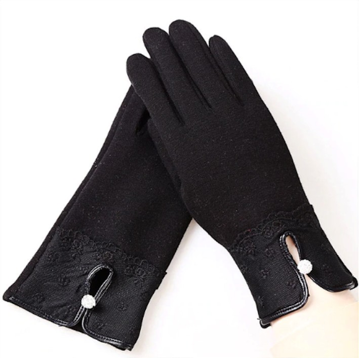 Stylish guanti invernali da donna in perfetta esecuzione. I guanti sono decorati con piccoli fiori.