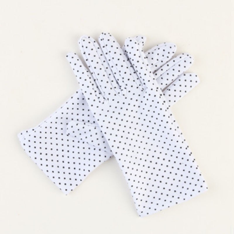 Eleganti guanti da donna con piccoli pois.