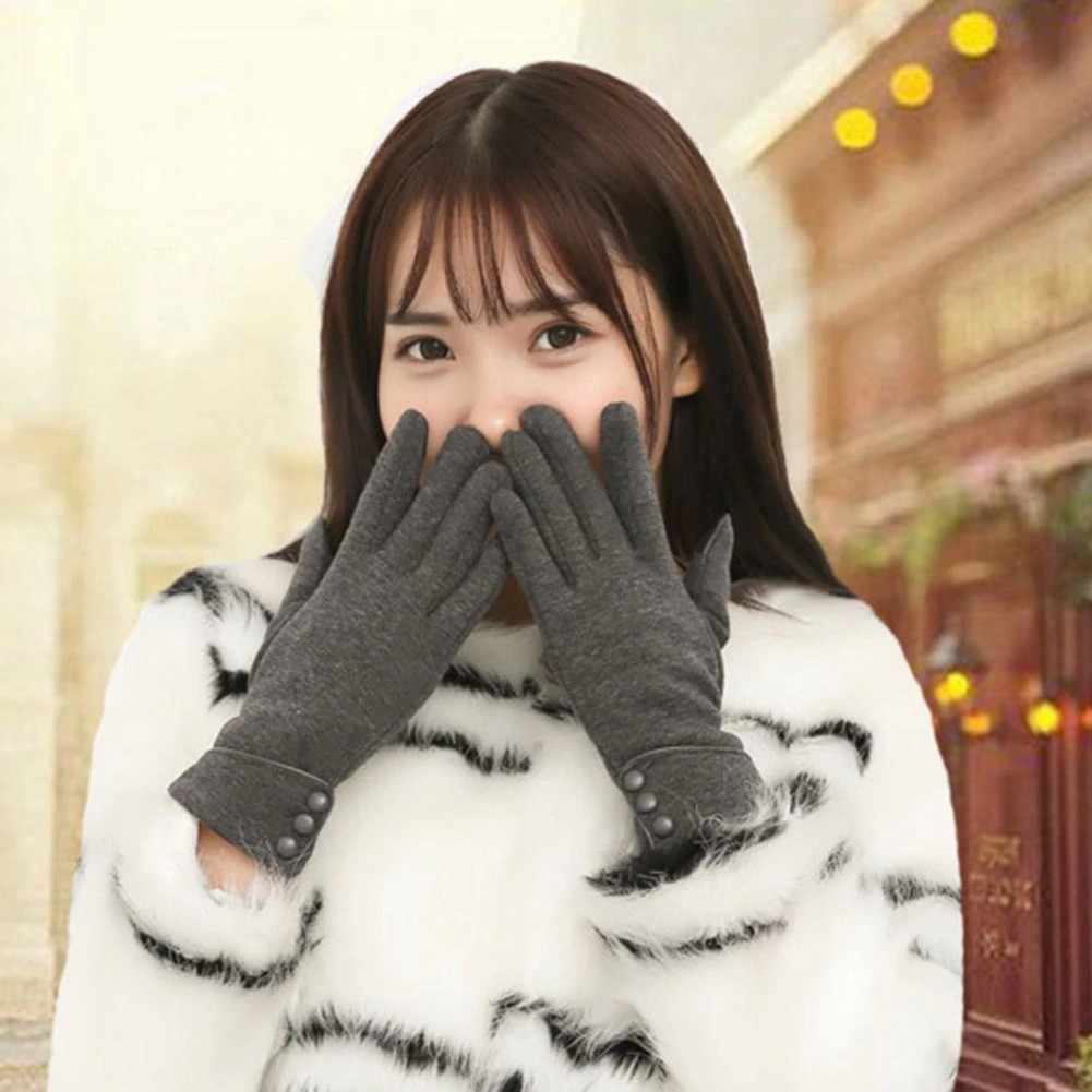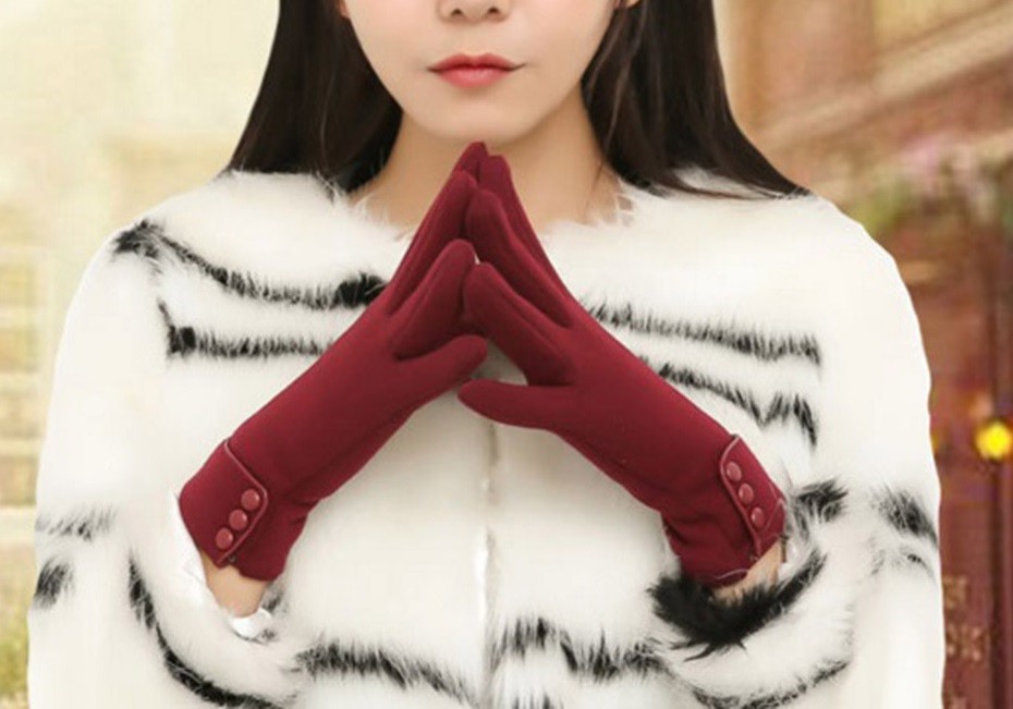 Guanti da donna eleganti in cashmere con bottoni sono adatti per il clima freddo.