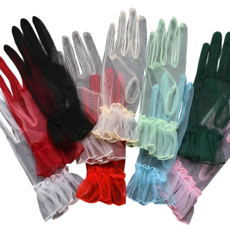 Guanti da donna in pizzo sottili trasparenti traspiranti in poliestere lunghi eleganti accessorio per serate