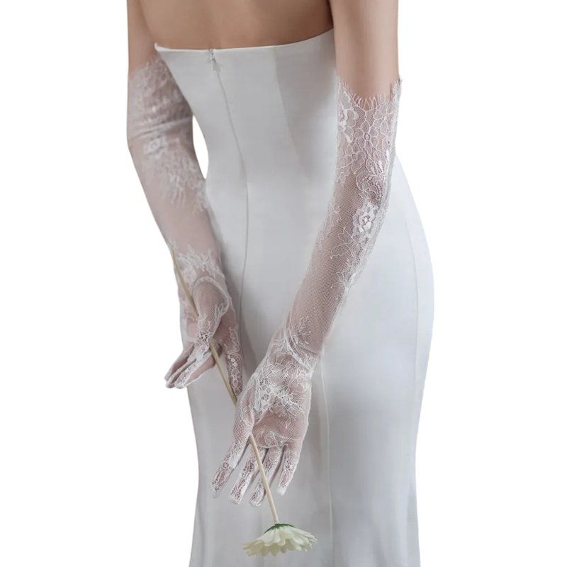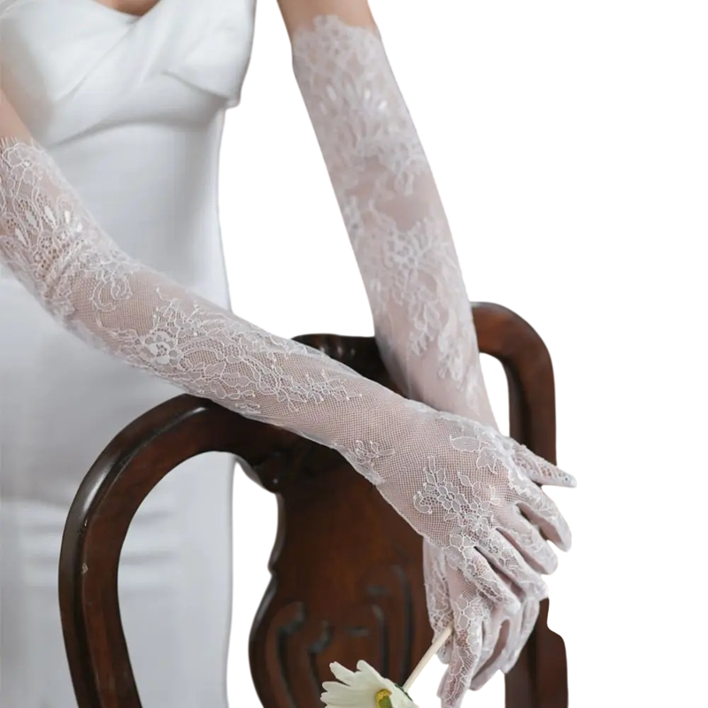 Pagina iniziale Pagina iniziale Abbigliamento e accessori Abbigliamento donna Accessori da donna Guanti da donna Guanti da donna lunghi in pizzo a dita intere in nylon bianco eleganti per eventi sociali e occasioni festive