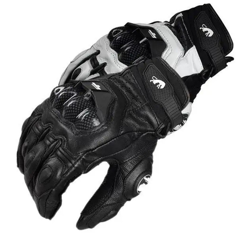 Guanti da moto neri e bianchi in vera pelle Guanti da corsa stradale per uomo con cinturino regolabile Traspiranti Perforati Imbottiti