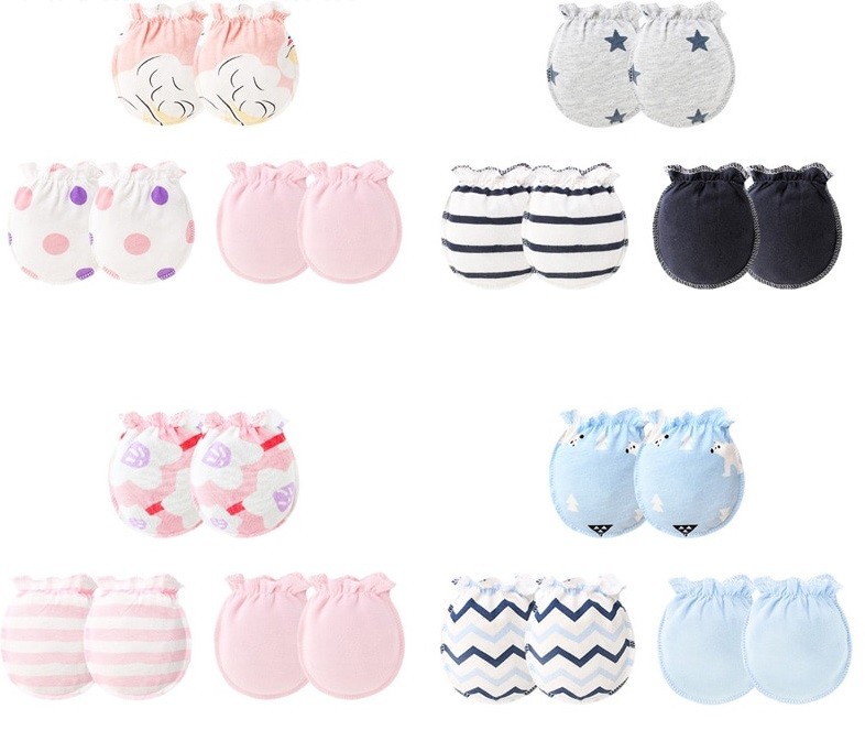 Confezione conveniente di 3 paia di guantini in cotone per neonati.