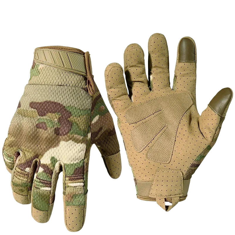 Questi guanti tattici da uomo sono progettati per prestazioni eccezionali, protezione e comfort. Sono dotati di una superficie antiscivolo sui palmi, che garantisce una presa salda e controllo sull'attrezzatura, e sono compatibili con schermi tattili, consentendo di controllare dispositivi elettronici senza dover togliere i guanti. Questi guanti sono un equipaggiamento essenziale per operazioni militari, attività all'aperto e partite di paintball.