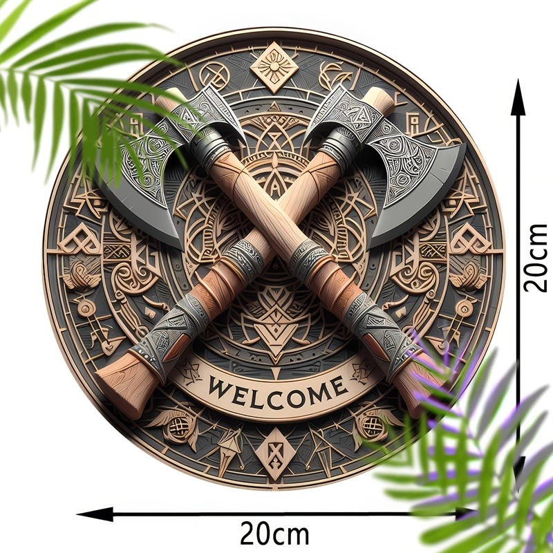 Insegna di benvenuto in legno con motivo di asce vichinghe conferisce al tuo ingresso un carattere nordico distintivo e un'atmosfera autentica. Descrizione completa