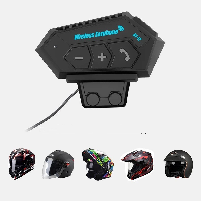 Intercom per motocicletta BT12 con microfono fisso Bluetooth 5.0 IP67 15 h di musica ricezione automatica delle chiamate per caschi aperti
