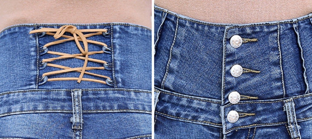 I jeans hanno 3 bottoni davanti e lacci sul retro.